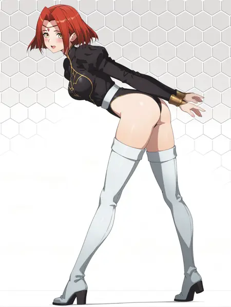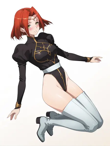 服装词:a_clothes,black long_sleeves,black highleg leotard,white thigh boots