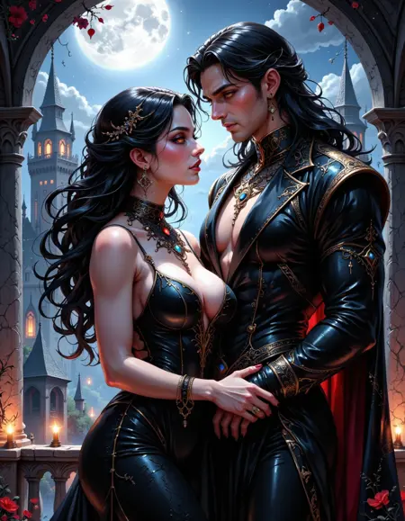 • Burning Elegance: Gothic fantasy reimagined with crimson-lit intensity — think enchanted witches, cursed relics, and moonlit rituals.