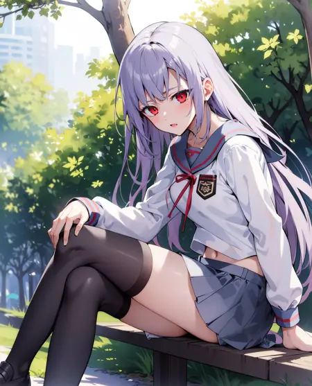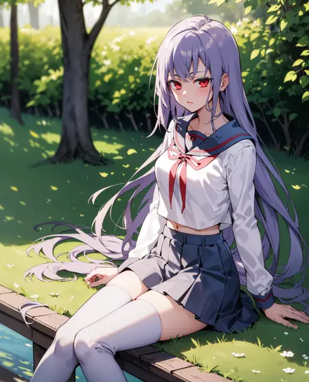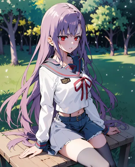 기본 옷차림을 위한 추가 태그: serafuku, 학교 교복, 미니스커트, 히프하이스, 복부 노출