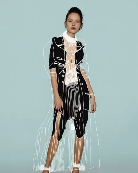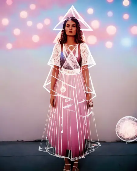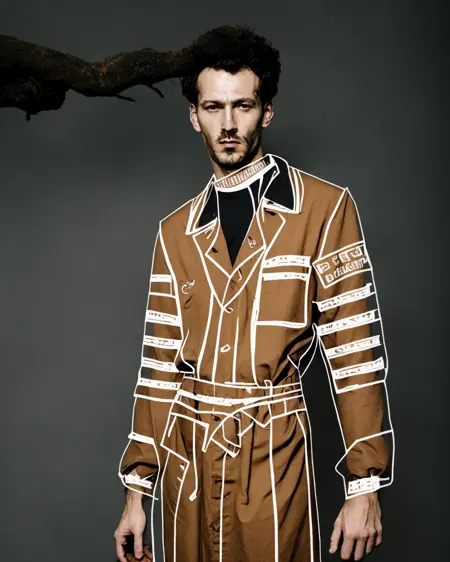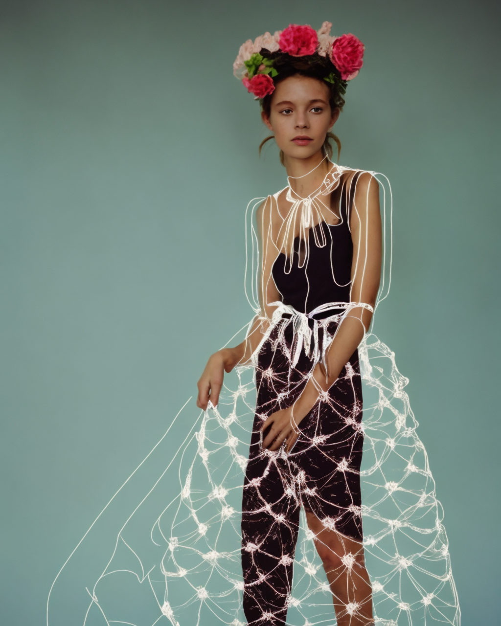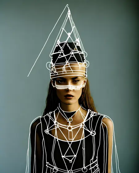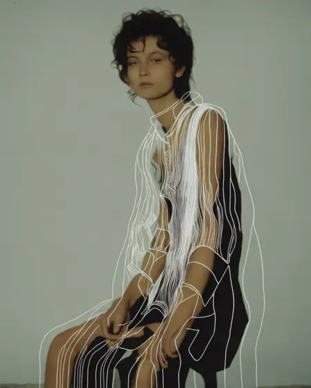 Here's a model that enables you to create unique photographic images with white graphic lines. This tool is primarily designed for clothing design, but your creative possibilities extend beyond just fashion; you can use it to explore other forms of artistic expression involving graphic lines.