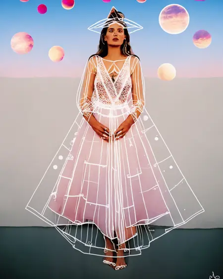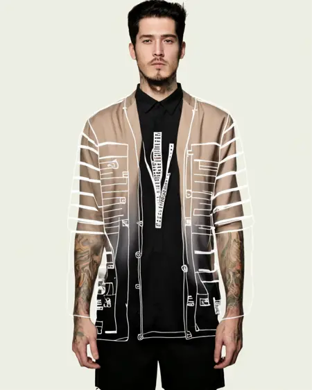 このモデルは、白いグラフィックラインを用いた独自の写真的画像を作成できます。このツールは主に衣料品デザインを目的としていますが、その創造的応用はファッションにとどまらず、グラフィックラインを用いた他の芸術的表現にも活用できます。