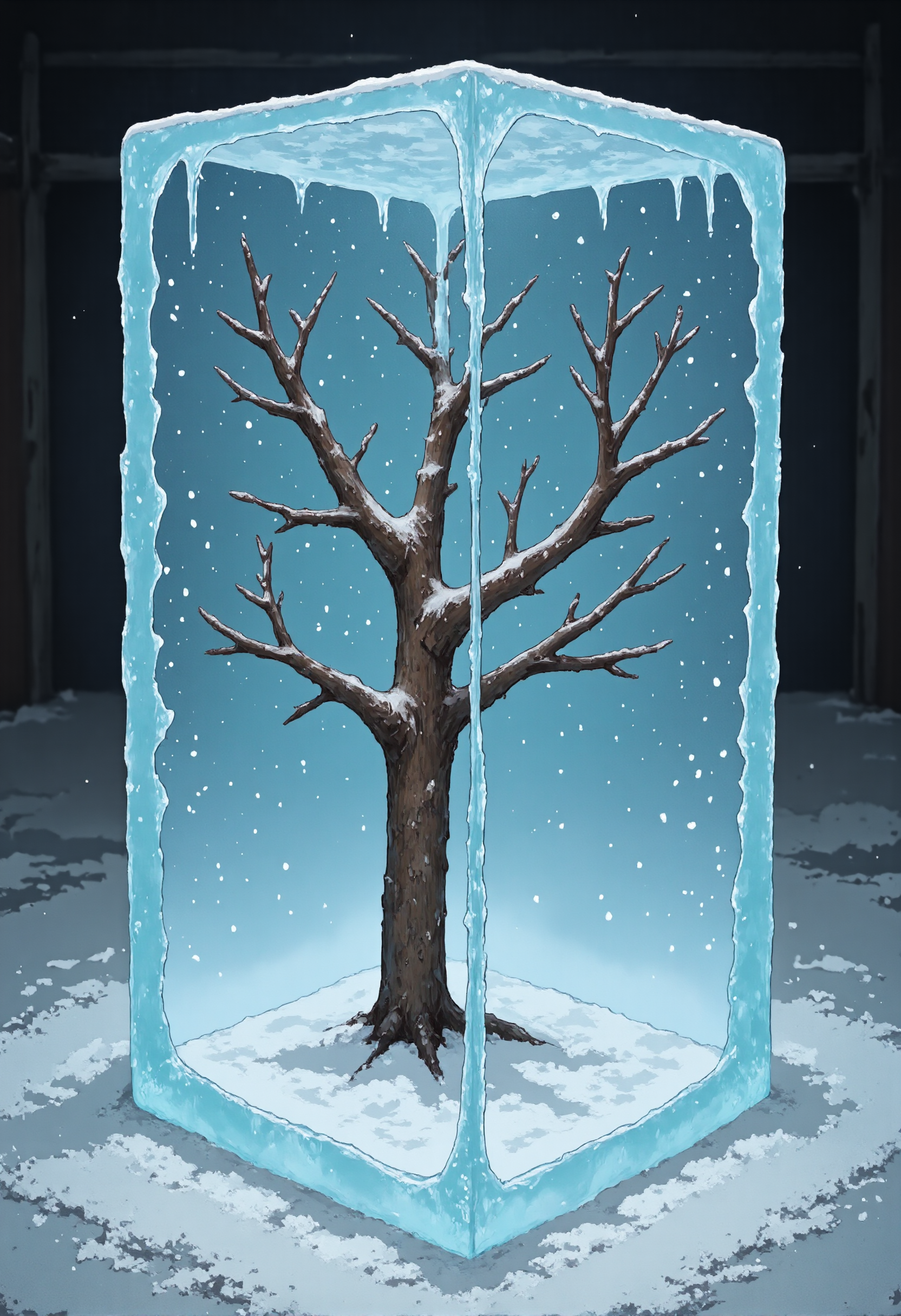 이 FLUX LoRA는 얼음 주형 또는 상자에 갇힌 어떤 것도 나타냅니다.