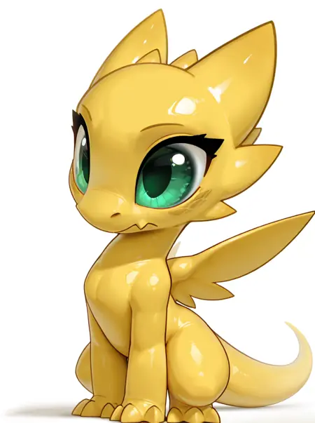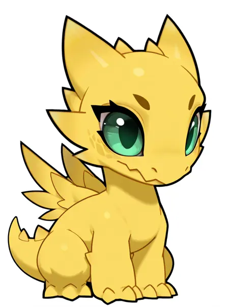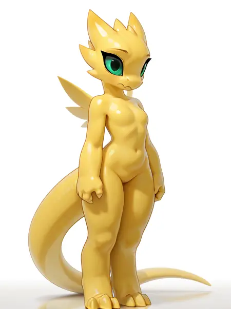 Triggers: feral, biped, scalie, wings, standing, female, yellow body, green eyes