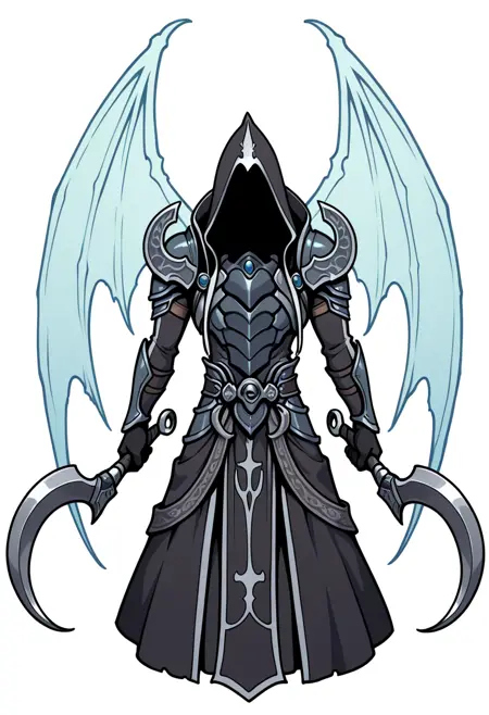 malthael, hood, shoulder armor, spirit wings, gauntlets