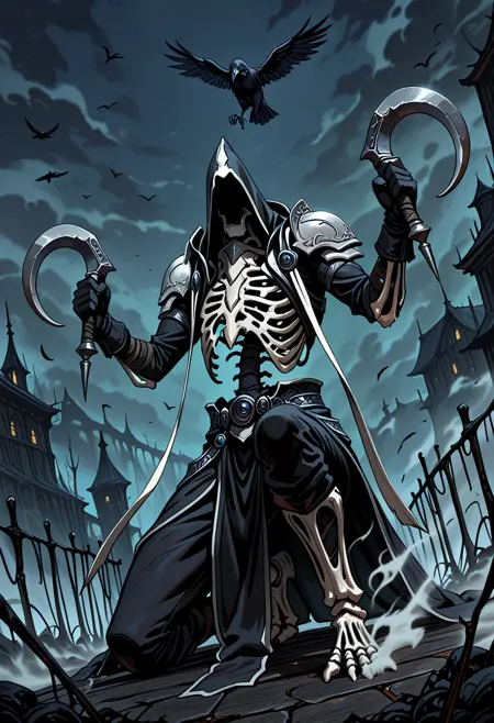 马尔塔海尔标志性的双镰刀交叉于胸前的姿态——不支持。你可以自行尝试:crossed arms、arms on chest、holding sickle、dual wielding。我试过了,行不通。