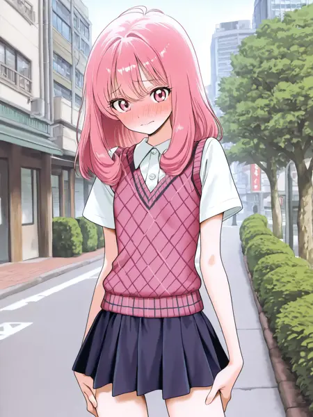 셔츠, 체크 무늬 스웨터 조끼, 치마