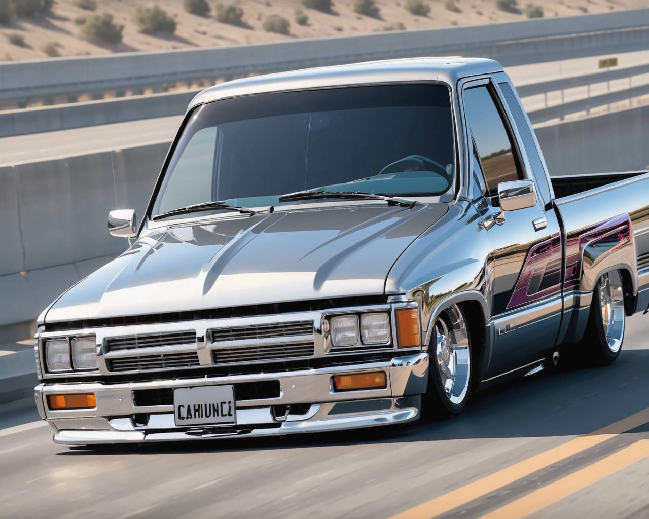 Used for generating images of classic two wheel drive mini trucks (and lowriders) from the 80s and 90s. It doesn't necessarily produce a specific brand but was mostly trained on Toyotas and Nissans. This model was trained on images at 1024x1024. No regularization images were used.