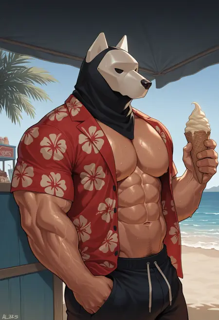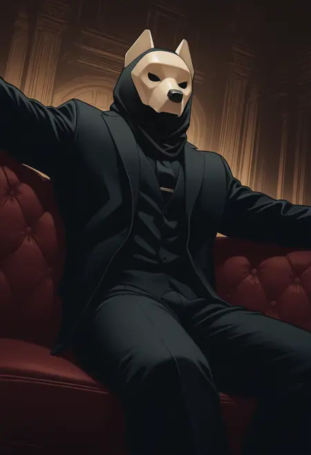 트리거 단어: al3ks1s, 검은색 및 흰색 마스크, 흰색 귀