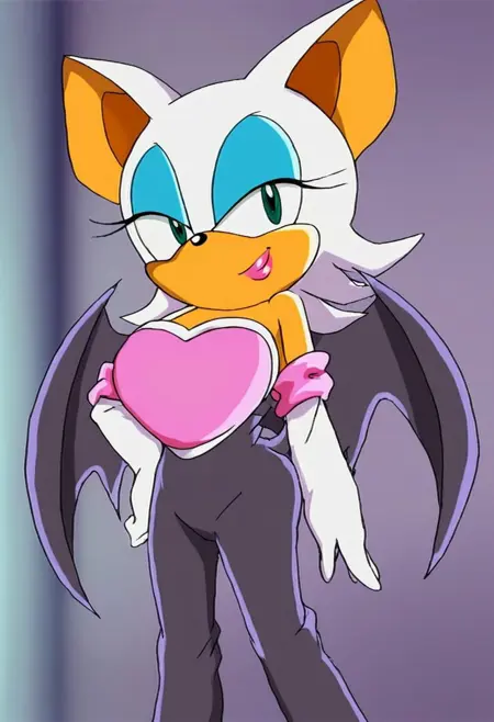 프롬프트: Rouge, 박쥐, 인류형, 흰색 머리 털, 갈색 몸, 갈색 코부리, 청록색 아이섀도우, 흰 장갑, 검은 원피스 복장, 심장형 가슴 보호구, 분홍색 립스틱, 녹색 눈, 큰 가슴,