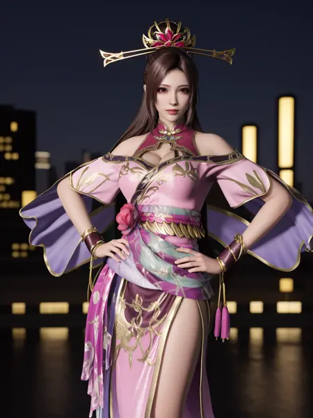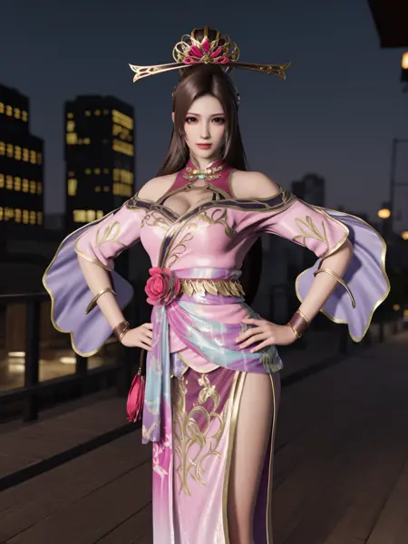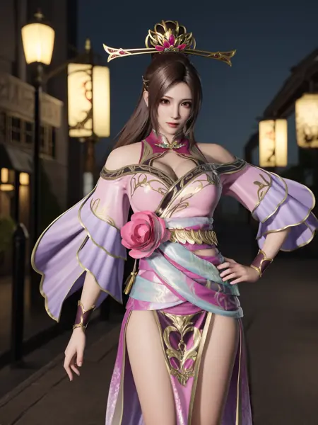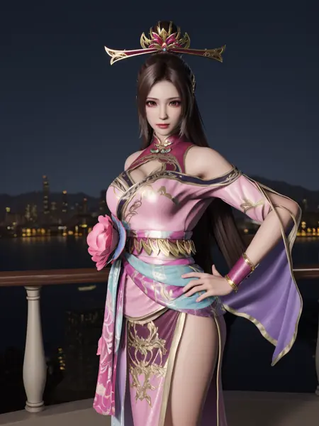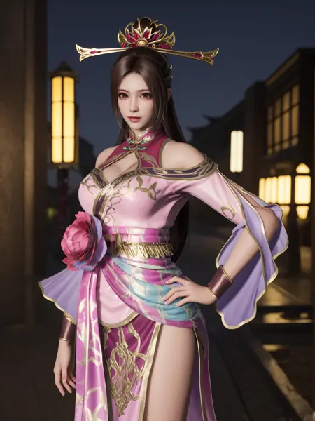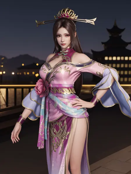これはゲーム『真・三國無双』に登場するキャラクター——貂蟬です。本LoRAトレーニング画像セットには、実在の人物の画像は一切含まれていません。ベースモデルには国風V3.3を使用しています。LoRAの参照重みは0.75です。国風3.3と互換性の高いモデルには:ReV Animated, DreamShaper, GCM-Game Concept Map などがあります。これらのモデルを使ってAI描画を試してみてください。