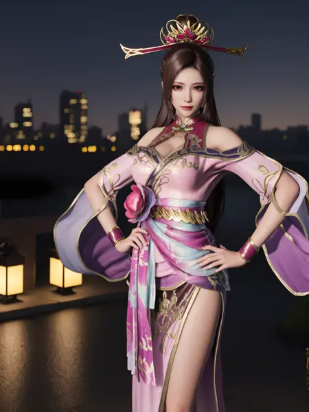 This is a character from a game called Dynasty Warriors (Shin Sangokumusou)——Diao Chan. This Lora training atlas does not contain any images of real people. The basic mold uses GuoFengV3.3.Reference Lora weight 0.75.Models with good compatibility with Gufeng 3.3 include: ReV Animated, DreamShaper, GCM-Game Concept Map, etc. You can try to use these models for AI drawing.