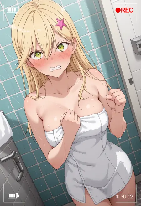 KJOaria, blonde hair, green eyes, star hairclip, long hair, hair between eyes,