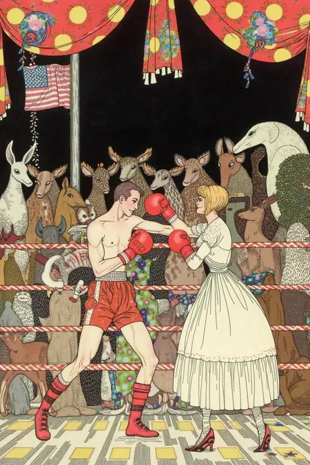 由丹麦艺术家凯·拉森·尼尔森(1886年3月12日 – 1957年6月21日)的39幅彩色与黑白插画训练而成。他是一位在20世纪初“插画黄金时代”广受欢迎的插画家,该时代从丹尼尔·维耶格等先驱推动印刷技术发展,使绘画和素描得以相对便捷地复制开始。尼尔森还因与迪士尼的合作而闻名,为《幻想曲》等作品贡献了许多故事草图和插画。欲欣赏其作品,请访问: