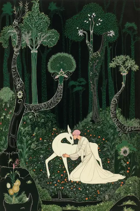 尼尔森的优雅与装饰性线条呼应比尔兹利的风格。