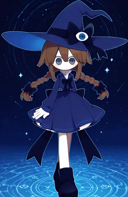 blue dress,blue hat,witch hat,
