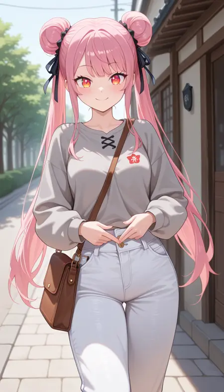 一般: 陶、ピンク髪、ダブルバント、ツインテール、ヘアリボン、サイドロックス、オレンジ色の目、赤い目