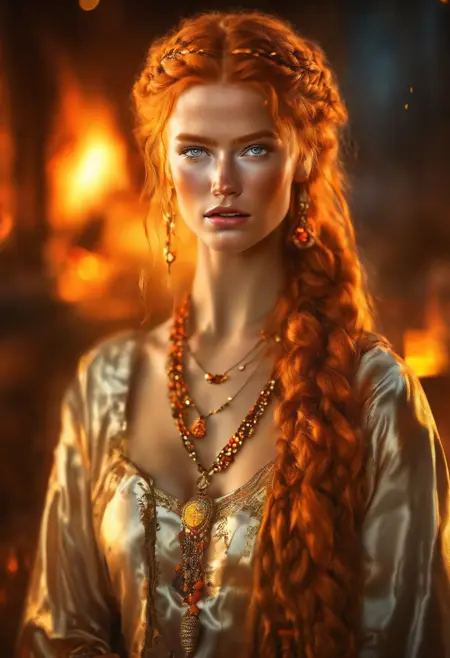 이 LoRA는 신화 전통에 깊은 존중을 기울이면서도 높은 사진적 사실성을 구현한, 사랑, 아름다움, 전쟁, 마법, 죽음의 노르딕 여신 프레이야를 구현합니다. 그녀는 표징적인 홍갈색 머리카락을 가지고 있으며, 종종 흩날리거나 꽃, 구슬, 금실로 엮인 땋은 머리로 표현되어 신성한 은은함과 지상적 연결성을 강조합니다. 그녀의 표정은 고요하고 환한 것에서부터 격렬하고 슬픈 것까지 다양하며, 생명과 상실의 여신으로서의 복합성을 반영합니다.