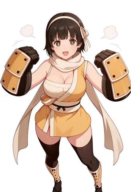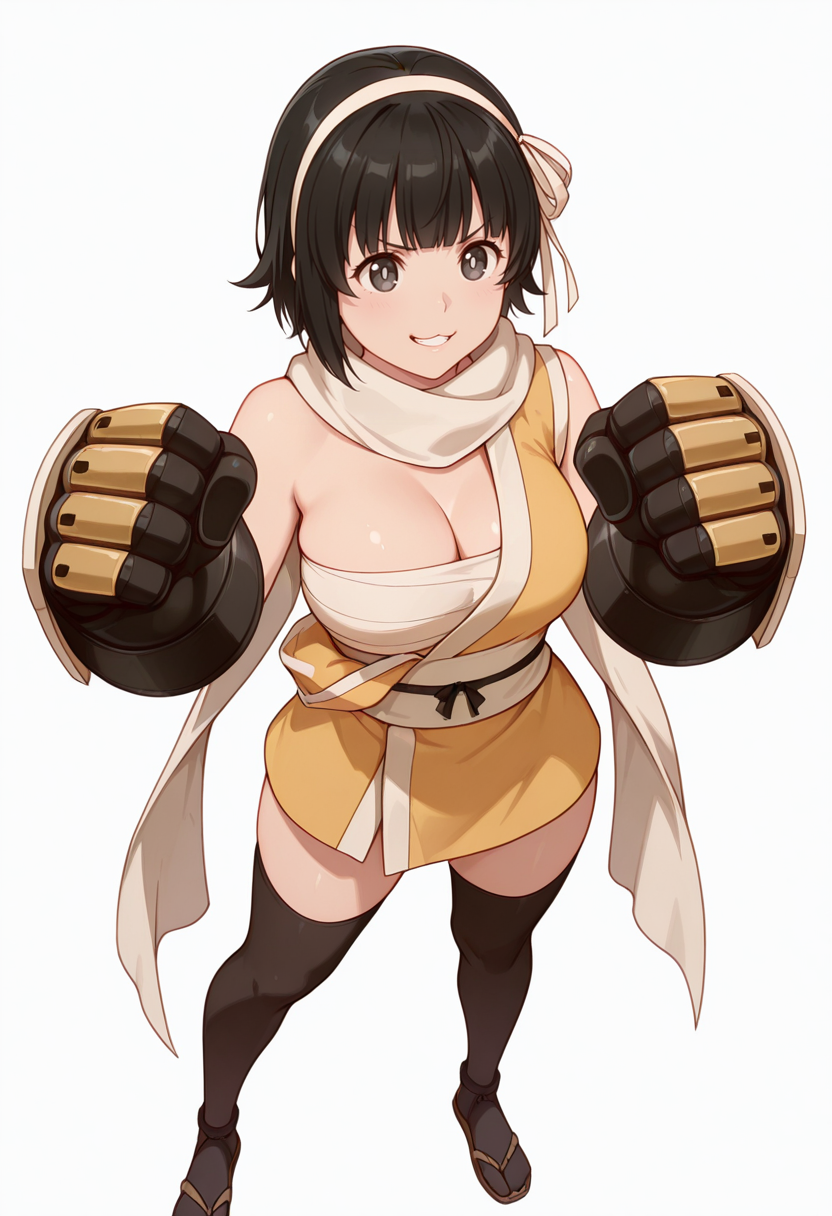 cleavage,scarf, sarashi, short kimono, black thighhighs,sandals,