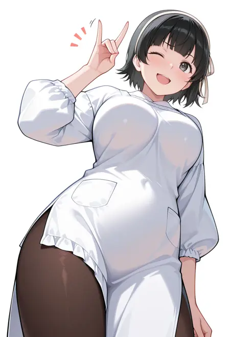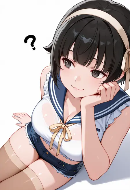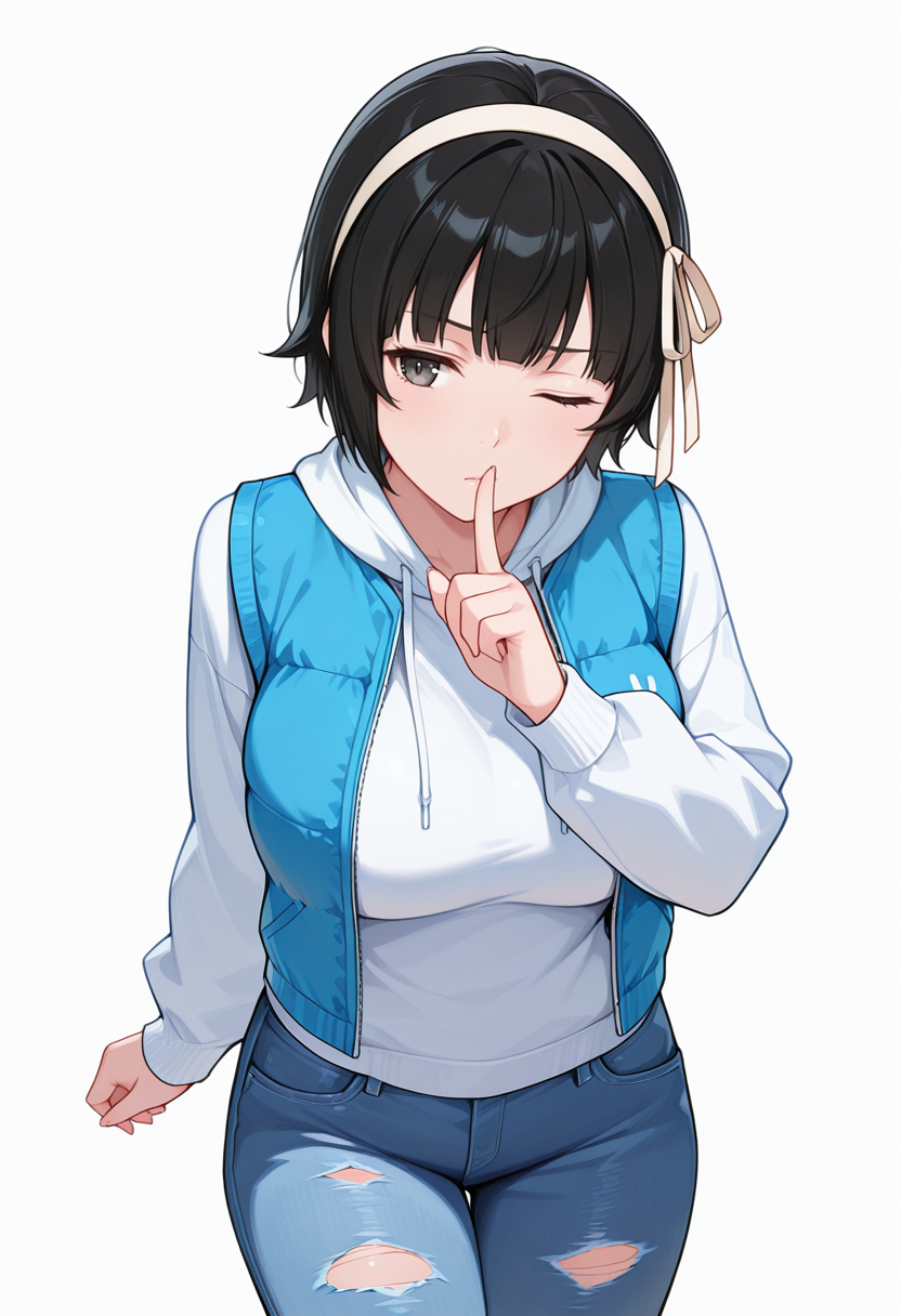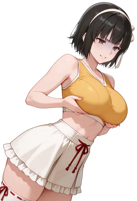 arisa_cnr, 1girl,black hair, short hair, bangs, black eyes, large breasts, hairband,