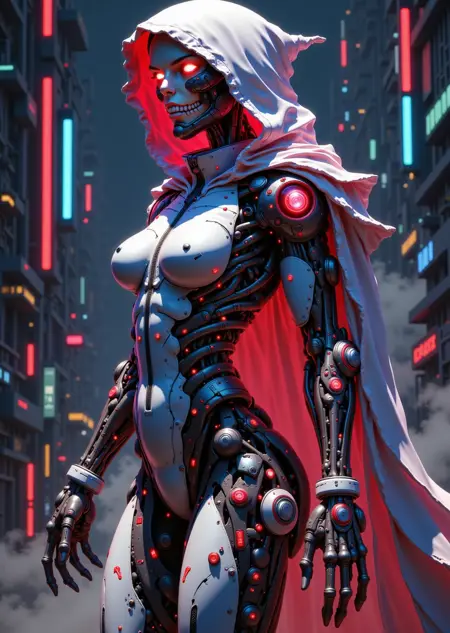 A high-detail LoRA for biomechanical augmentations, cybernetic prosthetics, and futuristic robotic humans with cyberpunk flair.