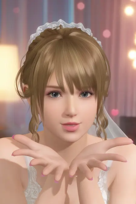 角色:莫妮卡 \(doaxvv\),金发,灰眼,粉唇,