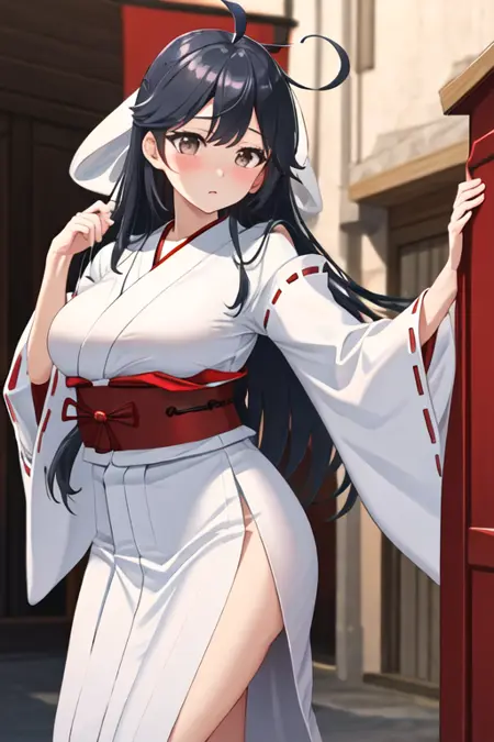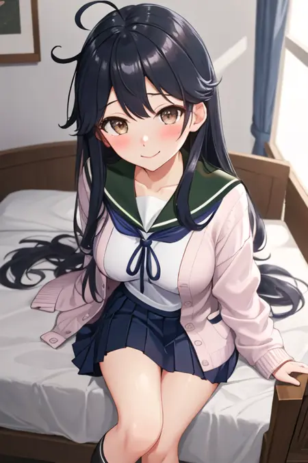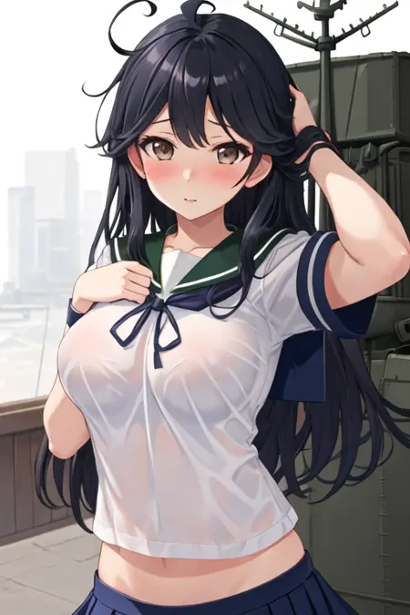 트리거 단어는 ushio_kantaicollection이며, 권장 태그는 best quality, masterpiece, highres, solo, {ushio_kantaicollection:1.15}, long_hair, black_hair, ahoge, brown_eyes, blush, breasts, serafuku, large_breasts입니다.