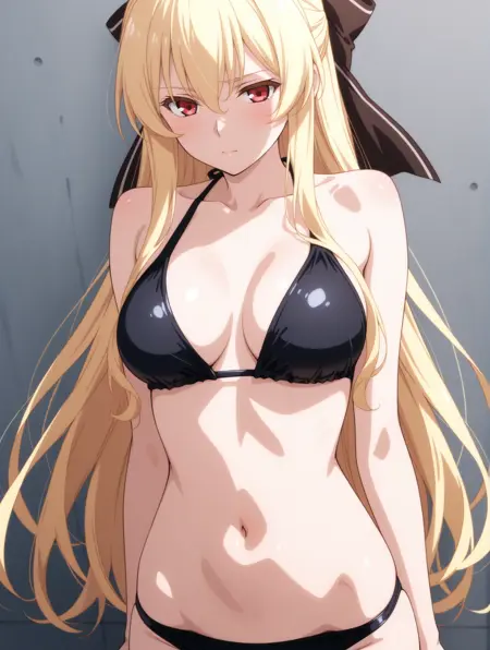 ブロンドヘア, 赤い目, 長い髪, 髪のリボン