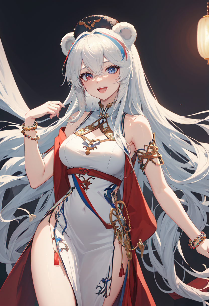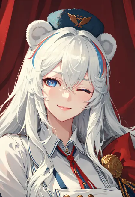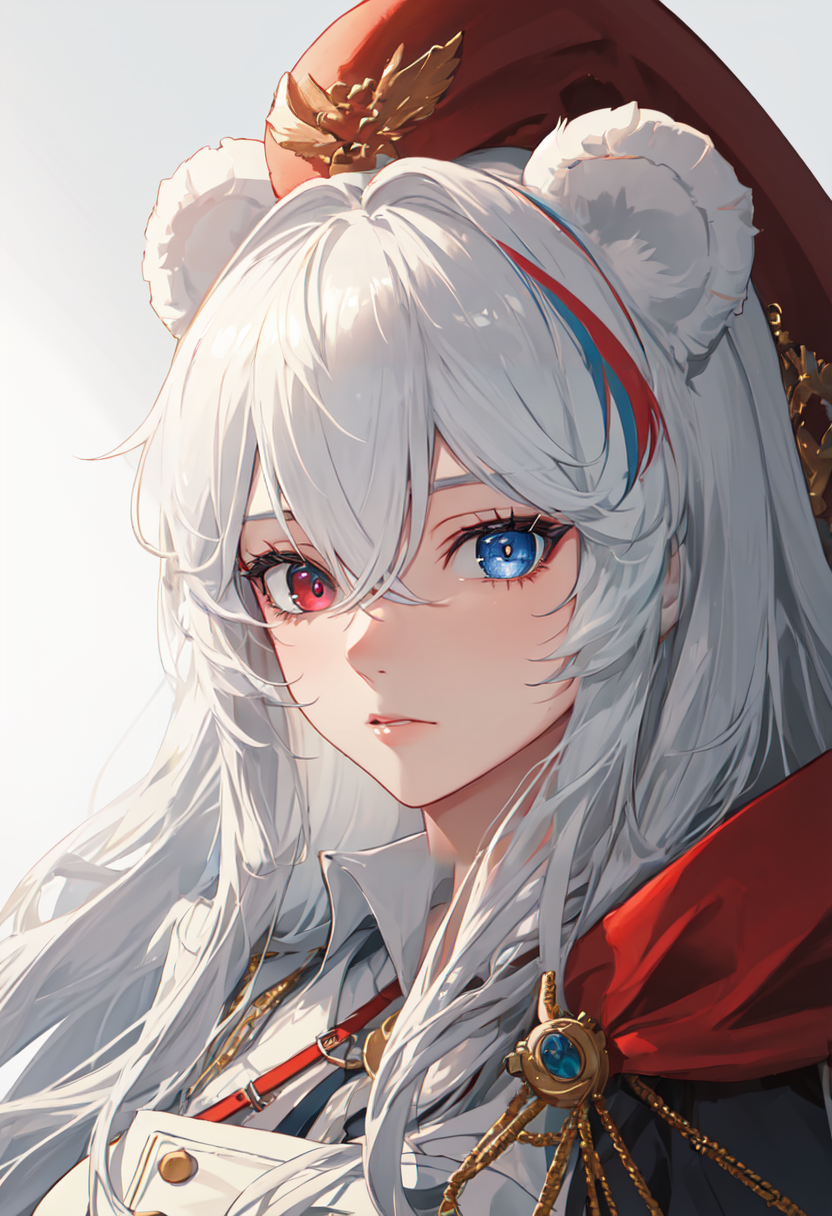 - The pruned character tags are animal ears, bear ears, long hair, white hair, blue eyes, heterochromia, multicolored hair, streaked hair, blue hair, red eyes, very long hair, hat, breasts, hair between eyes, blue headwear, large breasts. You can add them into prompts when core features (e.g. hair color) of character is not so stable.