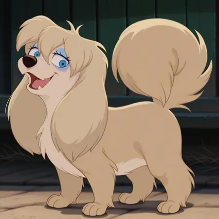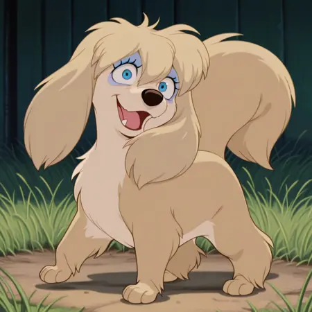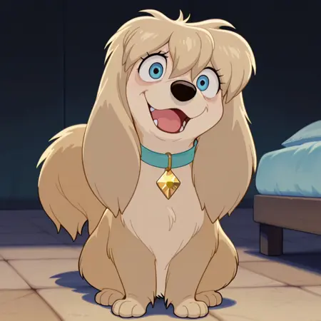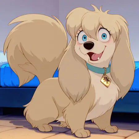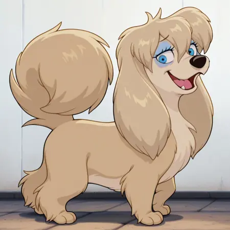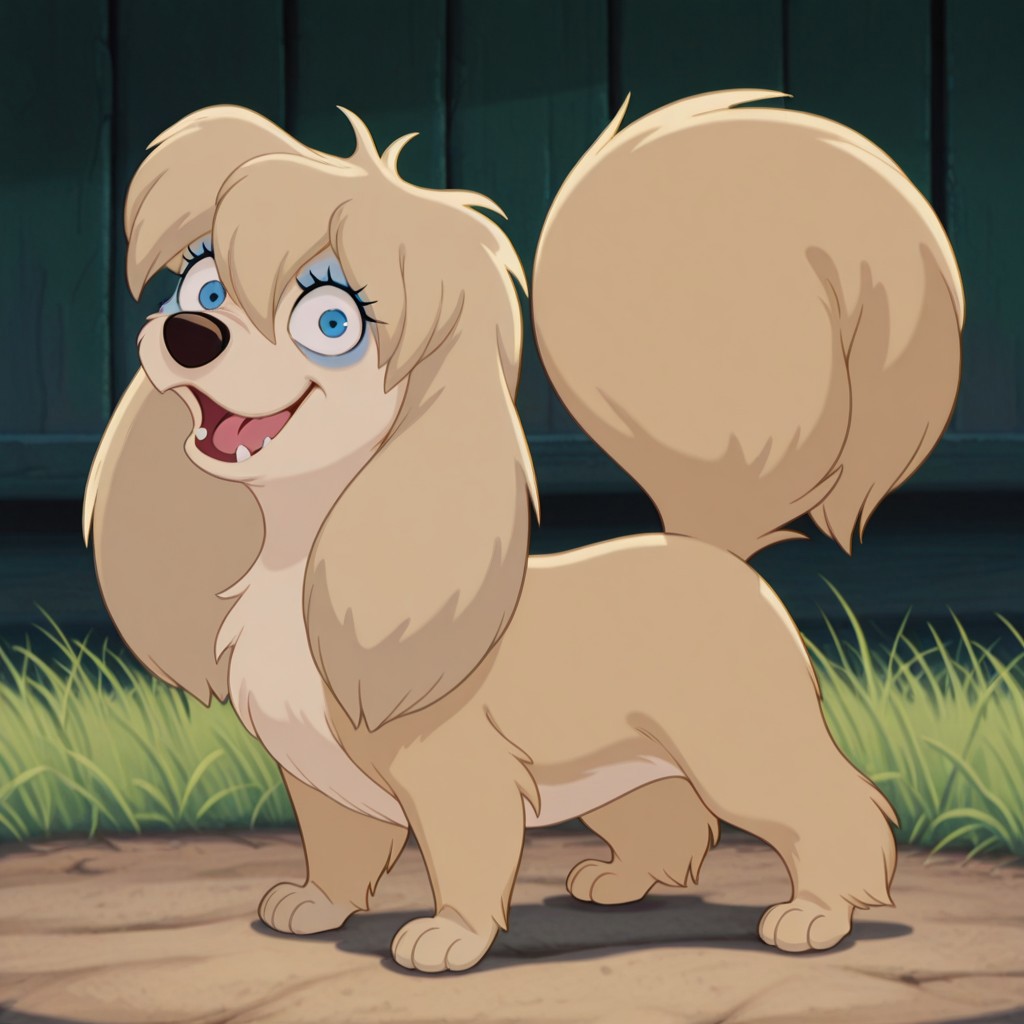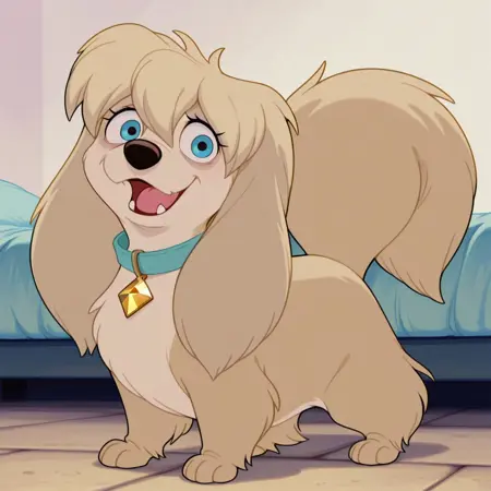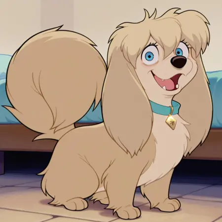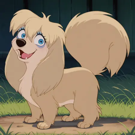 또한, 실사 리메이크와 제 팬픽션을 바탕으로 보너스 기능을 실험해봤어요. 페그가 결국 입양되어 집개가 되는 이야기죠. 여기서 페그는 집개의 삶에 맞게 약간 수정된 외모를 갖추었는데, 아이섀도우와 평소의 앞머리는 없애고, 머리 털은 유지하며 레이디처럼 목줄을戴上했습니다. 이 프롬프트는 두 번째로 나열되어 있습니다.