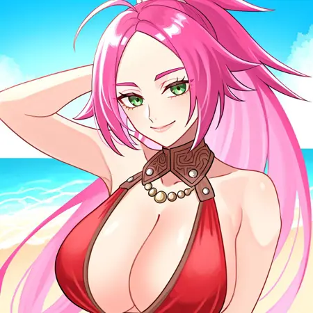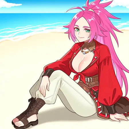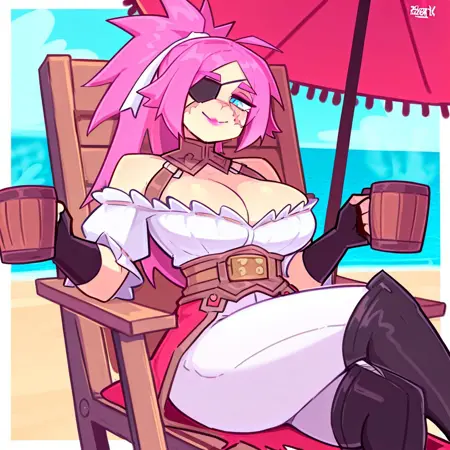 その他のタグ:あほ毛、長い髪、ピンクの髪、分け目のある前髪、顔の傷、大きな胸、胸元、ベルト、ももぶき、ハイヒール