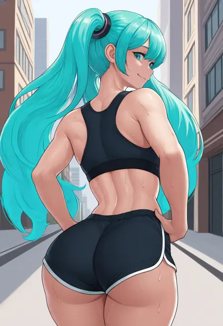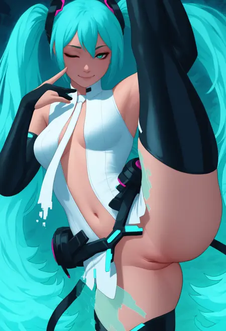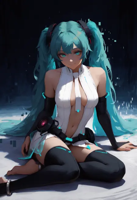 外观: 长发,水蓝色头发,双马尾,水蓝色眼睛