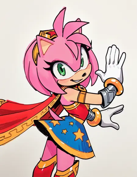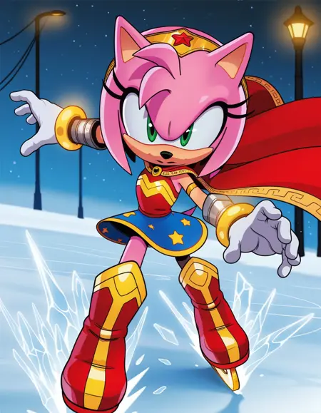 DC x 소닉 크로스오버 만화 최신호의 웨이너 우먼으로서 애미 로즈
