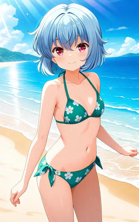 触发词:miyauchinozomi,蓝发,发丝遮眼,短发,红眼,星形瞳孔