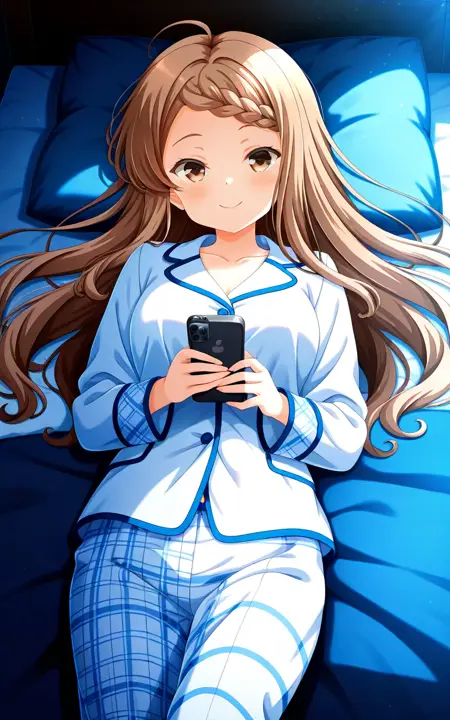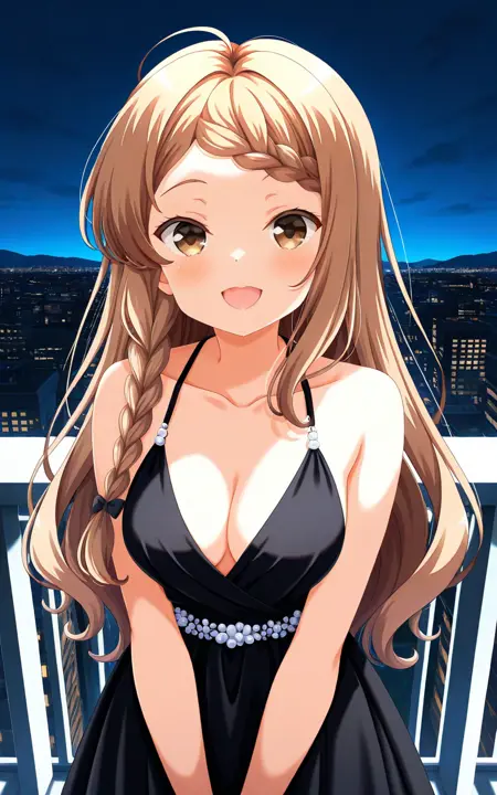 トリガー語: miyoshinao。茶色の髪、アホ毛、編み込みの前髪、一本編み、長い髪、茶色い目
