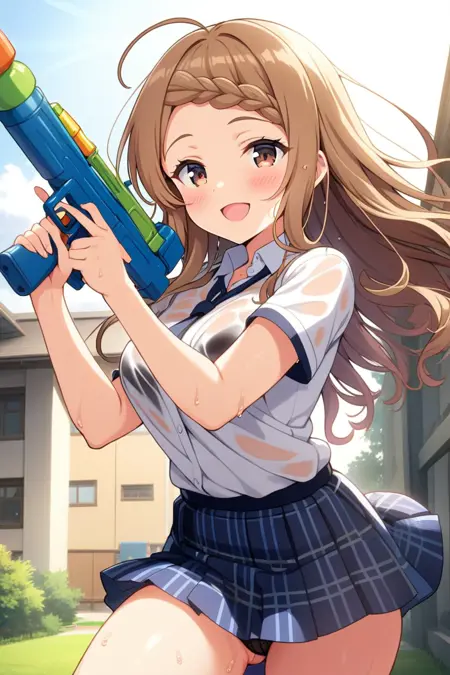 触发词:miyoshinao。浅棕色头发,天线辫,编发刘海,单辫,长发,棕色眼睛