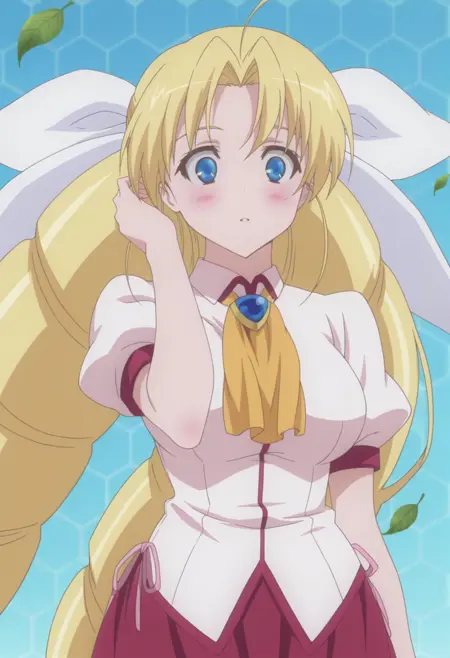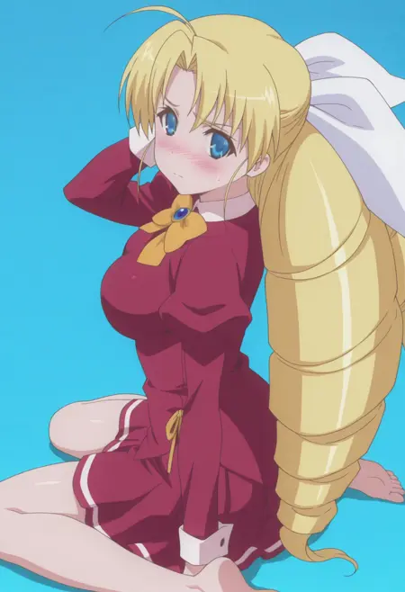 sernia iori flameheart, blue eyes, blonde hair,very long hair, twin drills