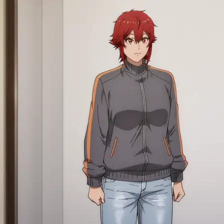 • 带灰色夹克触发词:TomoGreyJacket, 红发, 运动夹克, 红眼, 裤子, 1girl, 短发, 牛仔裤, 牛仔构图