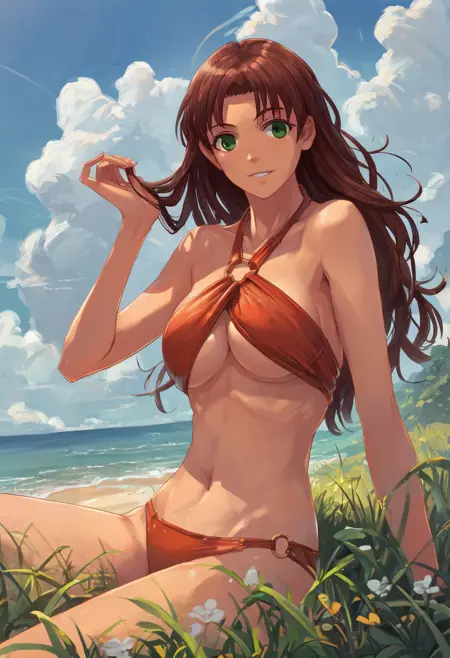 赤いビキニ、Oリングトップビキニ、ハルタネックカラーのビキニ、アンダーブーブ