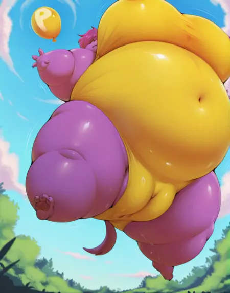 Body inflation and spherical inflation are for that full body inflated look. Body inflation is for that puffy look that happens just before the subject fully rounds out. Supplimental tags for these are inflated arms, inflated legs, puffed arms, puffed legs. Inflated and Puffed can be mixed with pretty good effects but they work best together. I used "puffed" for that "donut" limb look but if used the word "donut" the AI would just throw actual donuts all over the image XD. I don't recommend using hip or butt tags with either of these but who knows it might still work. I tried to make this model as customizable as possible.