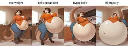 Each concept above can be mixed and matched any way you like. The only thing to keep in mind is that the blimp sizes don't have a space in the word. This was to prevent the AI from just making images of actual blimps XD. Also the ones for breast and butt are Blimptits and Blimpass because those roll off the tongue better. Also since breasts are the biggest focus for most expansion art, those get a fourth size with Boobwall