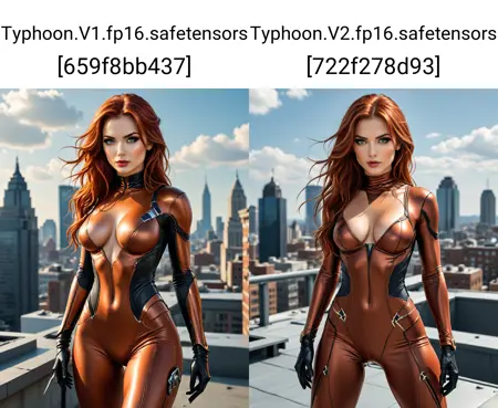 Typhoon V2는 V1의 시각적 기반을 바탕으로 프롬프트 준수성 향상, 해부학적 정밀도 개선, 재질 사실성 강화, 조명 및 표면 디테일에 대한 더 정밀한 제어를 제공합니다. 초기에는 미세한 변화로 보일 수 있지만, 이는 수술처럼 의도적으로 집중되고 구체적이며 기술적으로 복잡한 업그레이드였습니다. 전반적인 재구성은 없었고, 단지 수정이 필요한 부분만 개선되었습니다.