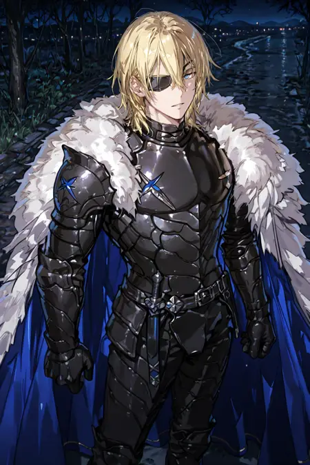 dimitri, dimitri_old, medium hair, blonde hair, blue eyes, black eyepatch, hair between eyes, bangs,