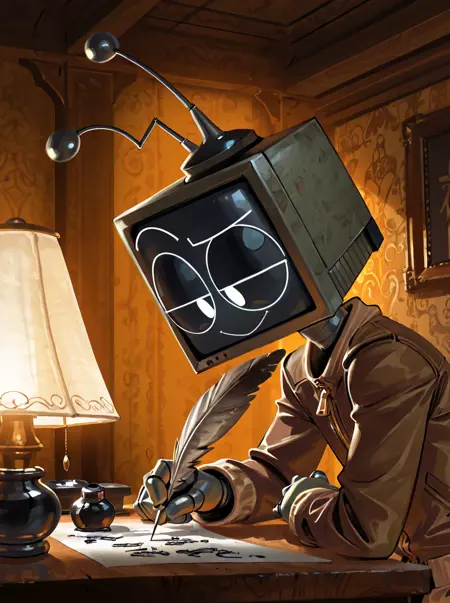 Triggers: 1boy, object head, tv head, humanoid, robot humanoid, antennae