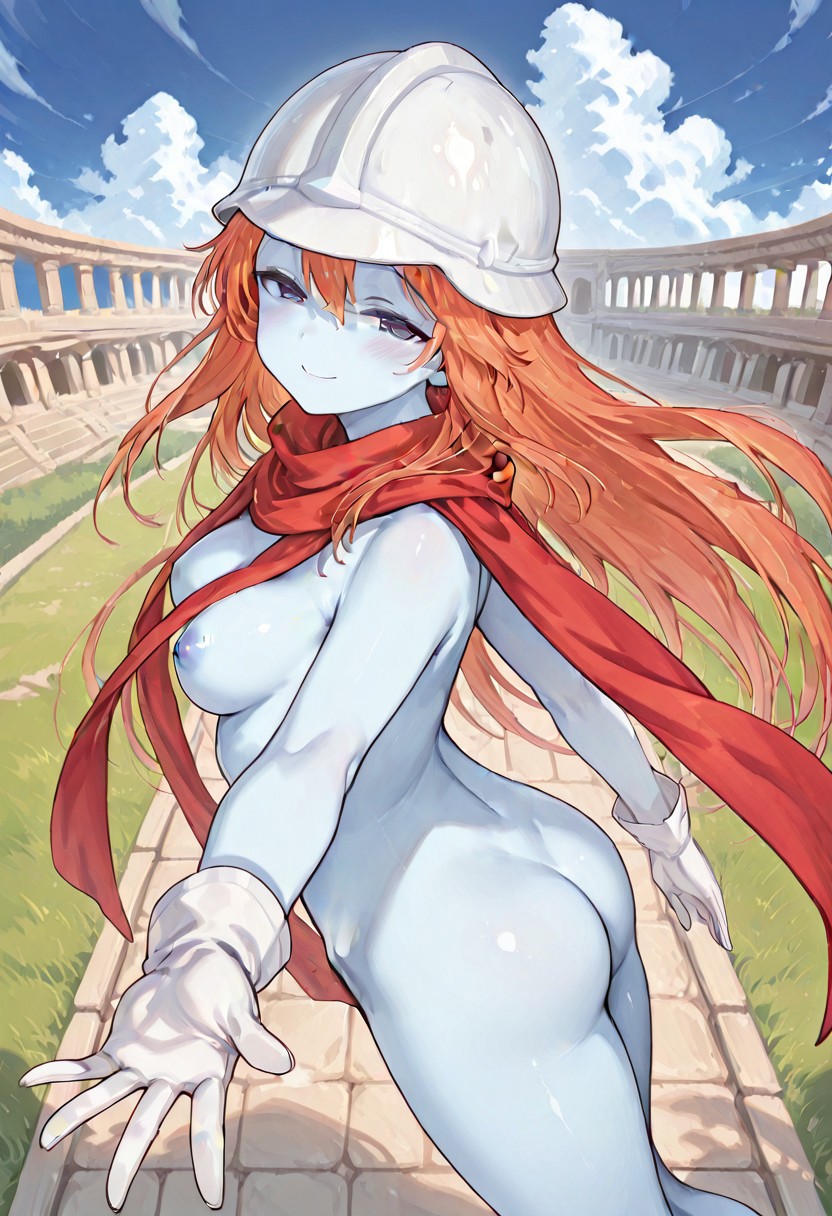 蓝色眼睛,橙色头发,长发,蓝色皮肤,有色皮肤,