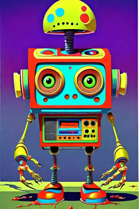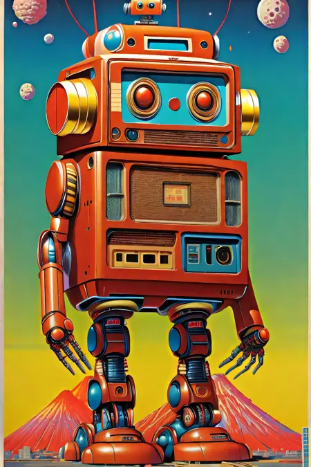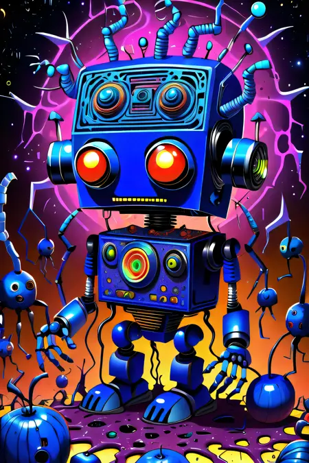 最も明確な結果を得るには、プロンプト内で任意の被写体の代わりに「robot」という用語を使用してください。重みが低い場合(.5-.7)でも効果があります。