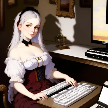 Also try these artist tags at different weights. Sometimes they help, sometimes they don't: Franz Xaver Winterhalter, Albert Lynch, Serge Marshennikov