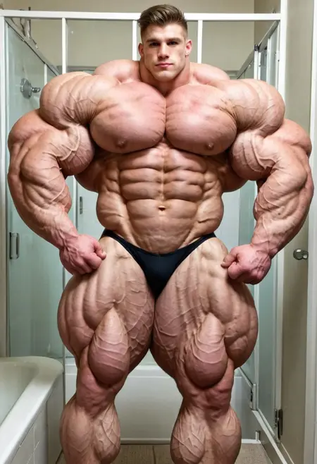 Create bigger muscles! Swole, veiny, hyper muscles. Muscular bodybuilders. Handsome face. Masculine face.