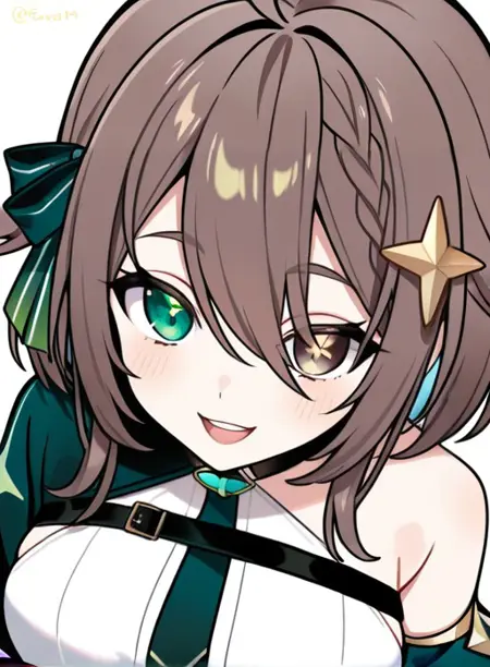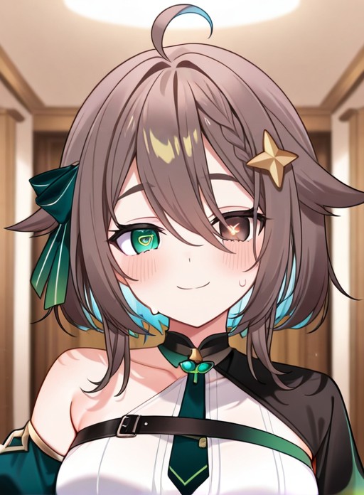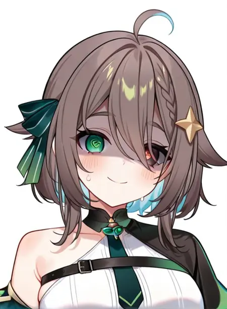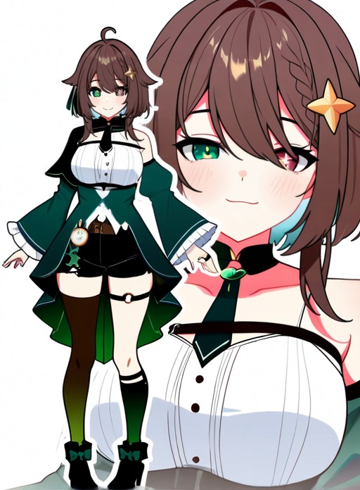 Meica05,乳房,大乳房,棕发,发饰,蝴蝶结,丝带,头发遮住眼睛,中等乳房,棕眼,绿眼,蓝发,呆毛,辫子,发带,多色发,发髻蝴蝶结,虚拟YouTuber,中等长度头发,星星(符号),双色发,符号形状瞳孔,单辫子,异色瞳,浓眉,眼睛透过头发可见,彩色内发,侧辫,发帘,绿色蝴蝶结,星星发饰,绿色丝带,长刘海,星星形状瞳孔,眼中符号,钻石(形状),十字形瞳孔,不匹配瞳孔,翘发,钻石形瞳孔,水色头发,刘海扫过