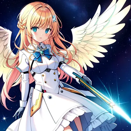 先日、Pixivでこのようなスタイルの天使を生成するプロンプトを見つけ、今なら作り方がわかるので、これ用のLoRAを作ることにしました。ただし、このLoRAを使用すると、たまに武器が生成されることに注意してください。
