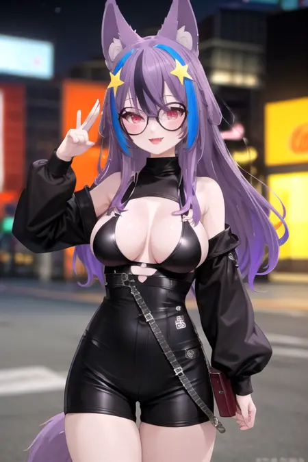 KianyVV、1人 Girl、ソロ、長い髪、胸、頬赤らみ、笑顔、口を開けた、紫色の目、白髪、紫髪、多色髪、ハート、角、翼、チョーカー、尖った耳、バーチャルユーチューバー、ほくろ、ストライプ髪、目の下のほくろ、化粧、牙、悪魔の少女、悪魔の角、Oリング、悪魔の翼、黒い角、角の装飾、ハートチョーカー、ハートOリング、前角